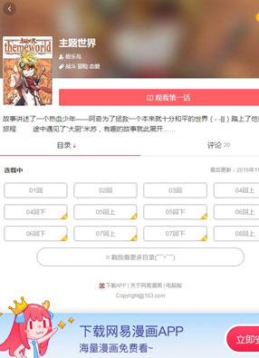 2025-08-01 13:43 开始阅读 微信阅读 简介: 《主题世界》漫画简述:这是在一个神奇的世界发生的一个神奇的故事。象征着水、火、风、土的四个岛屿围绕着王宫,以一种微妙的关系延续着世界的运作。国王每天都为他心爱的女儿送去自己精心准备的早餐,有一天,公主突然不见了,只留下了空荡荡的房间,然后随着一声怒吼,一个少年踏上了拯救本来就很和平的世界的故事。